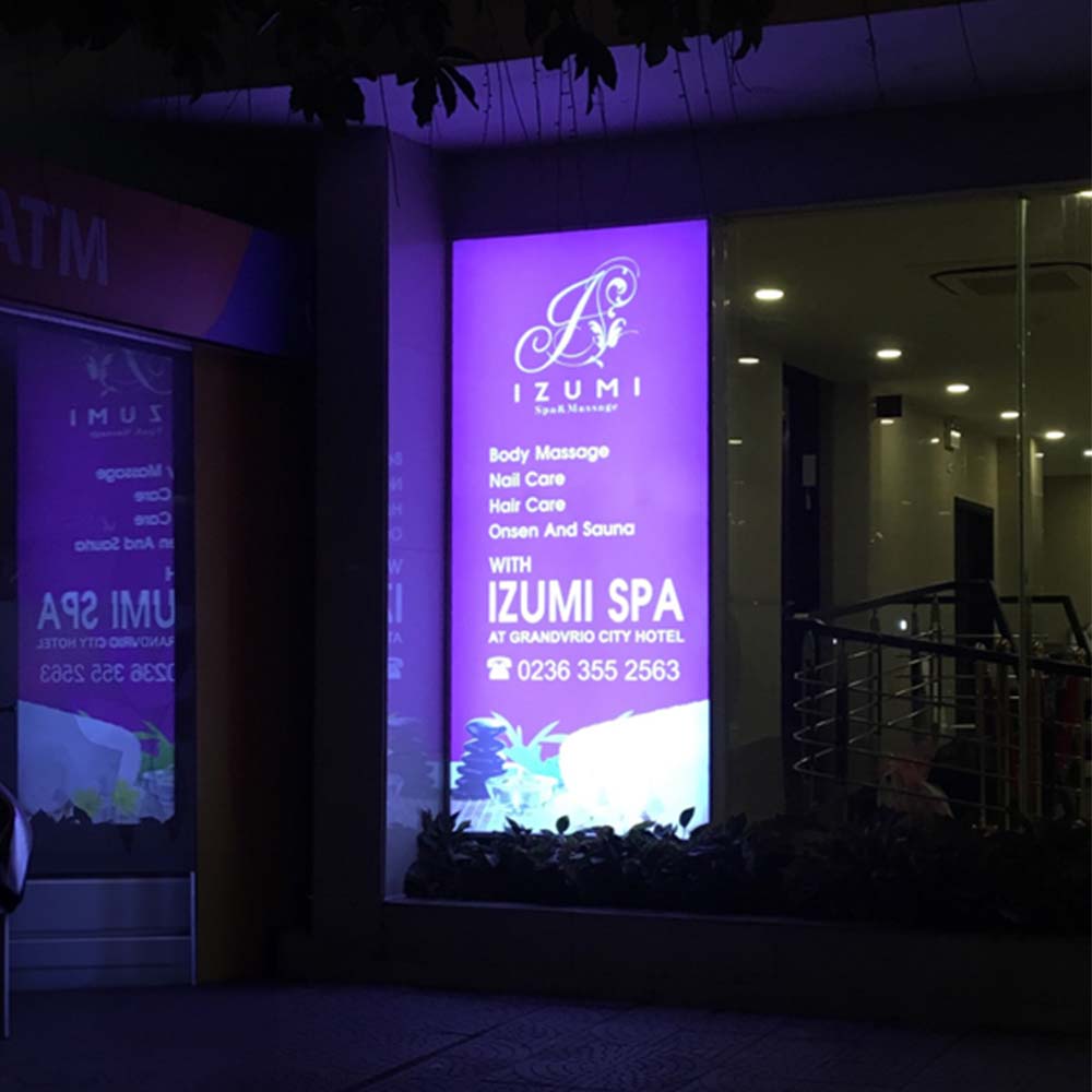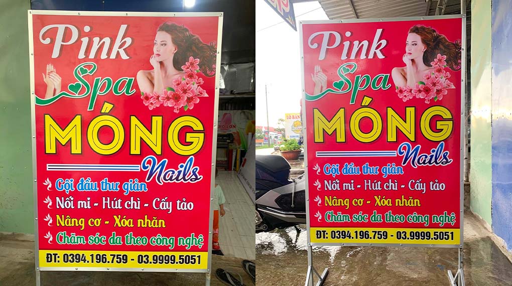 Chúng có thể được treo tại cửa vào của spa, trên tường, hay dọc đường phố để tạo sự nhận biết thương hiệu và thu hút sự quan tâm của khách hàng.