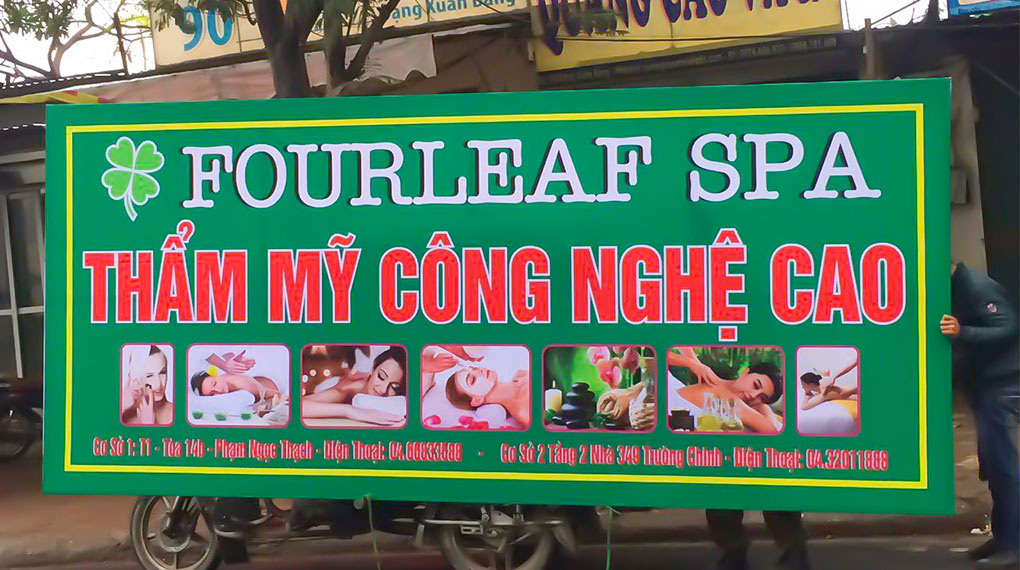 - Đối với những spa có mặt tiền lớn thì việc sử dụng biển bạt như dòng cao cấp sẽ vẫn đảm bảo độ nhận diện và sang trọng