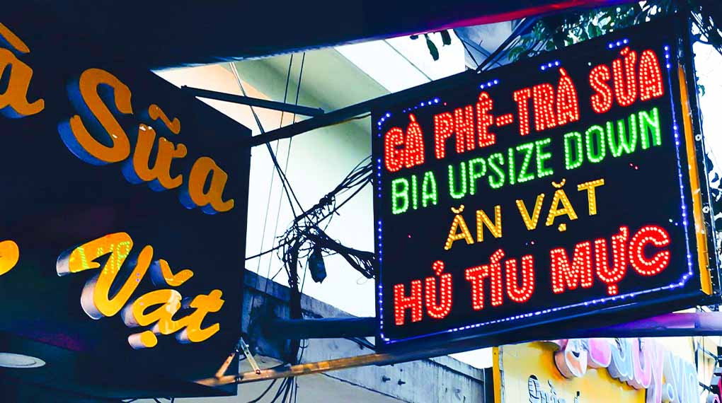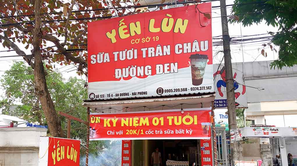 Biển vẫy trà sữa: Thường được lắp đặt trước cửa tiệm, hãy sử dụng loại có đèn để tăng sự nổi bật vào ban đêm.