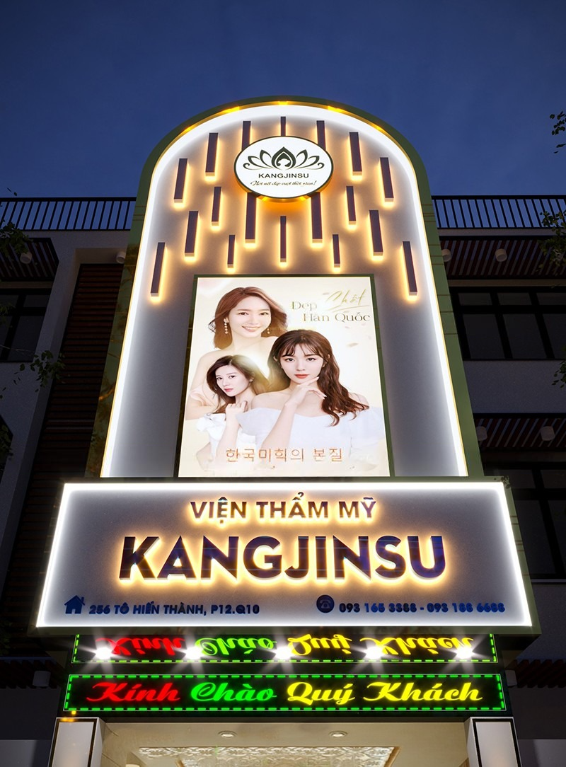Mẫu bảng hiệu này thường dùng chữ nổi bằng inox, mica hoặc đồng, gắn trên nền alu tạo độ sâu và sang trọng. Phong cách này phù hợp với các Spa cao cấp, mang đến sự tinh tế và đẳng cấp.