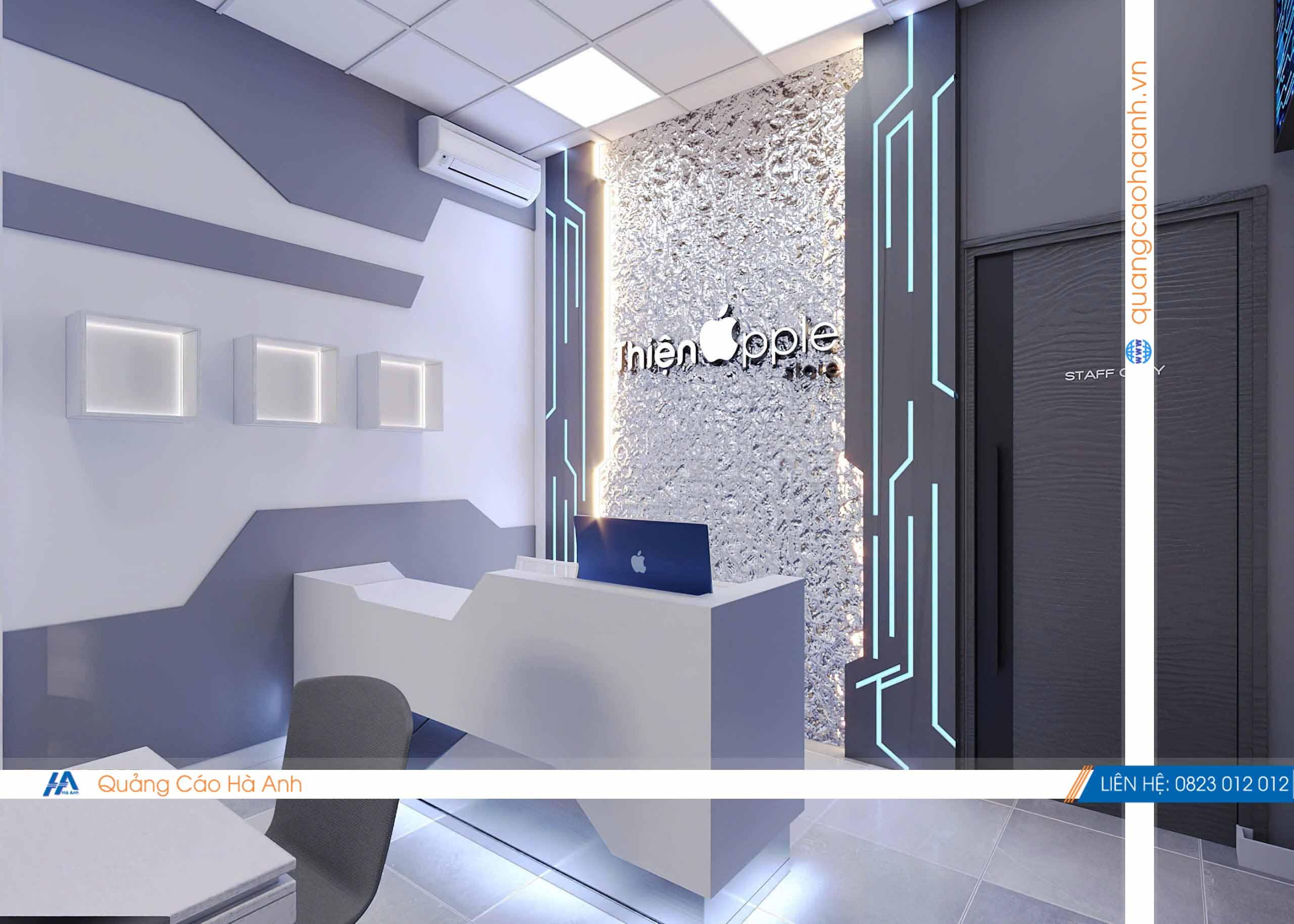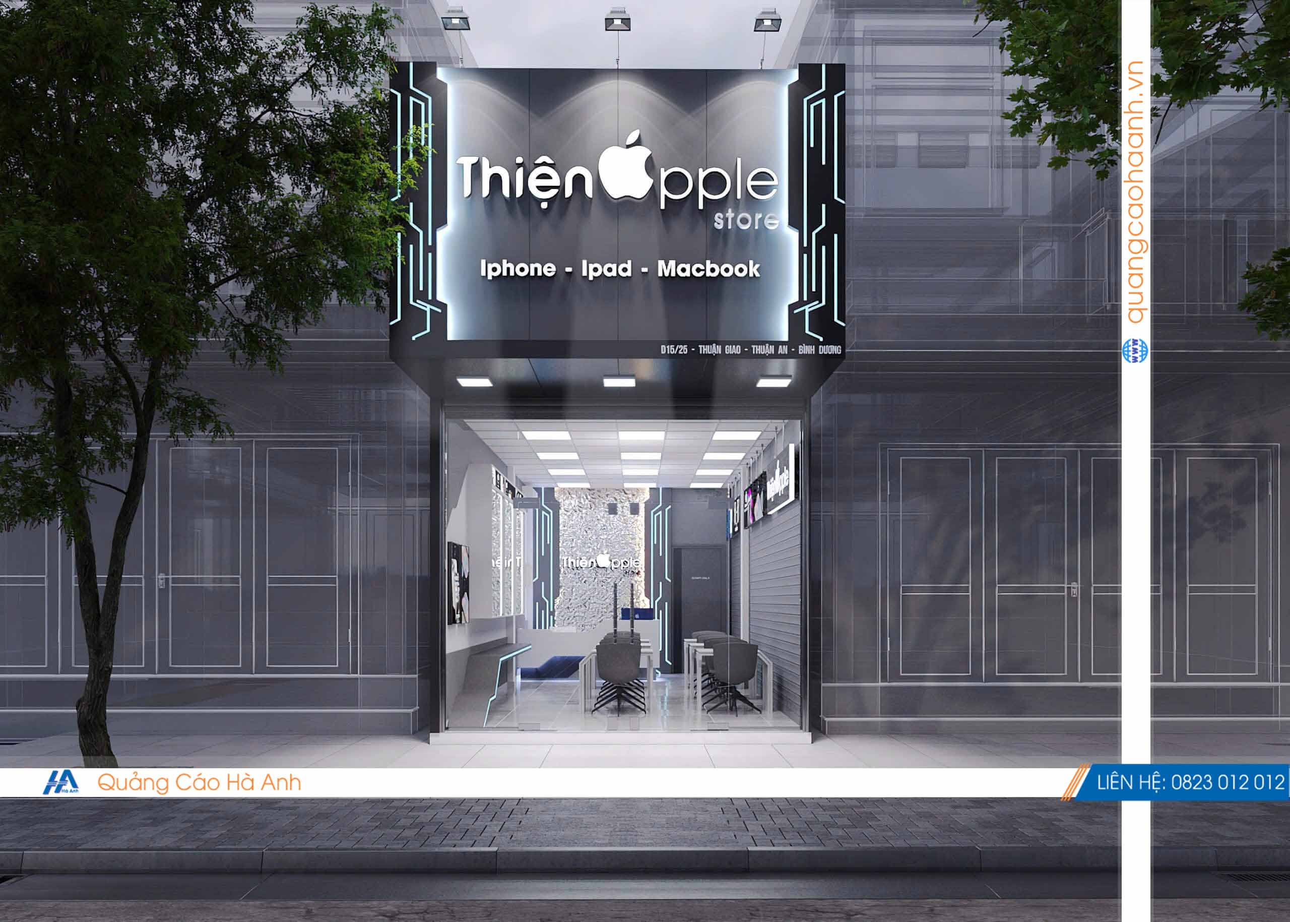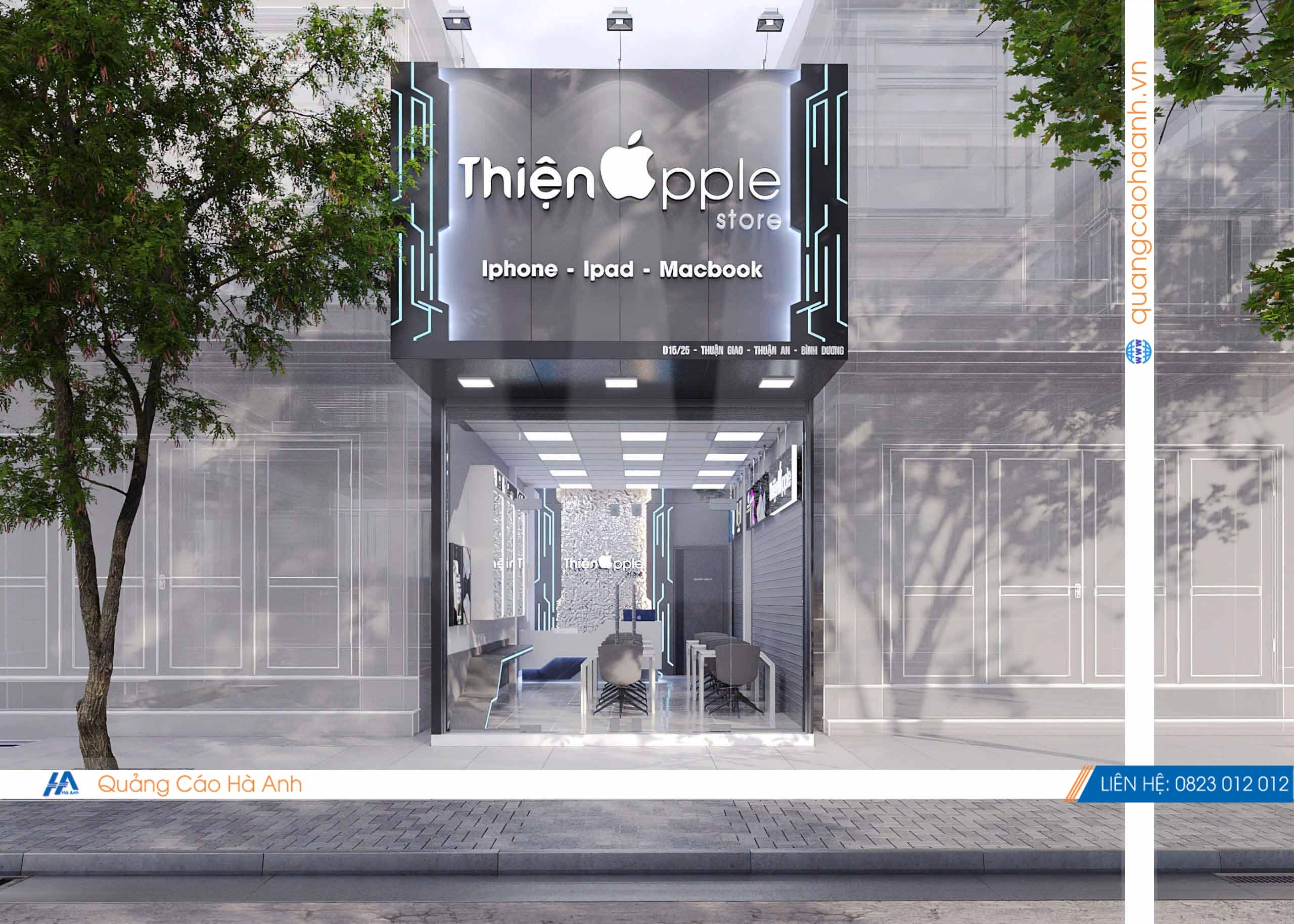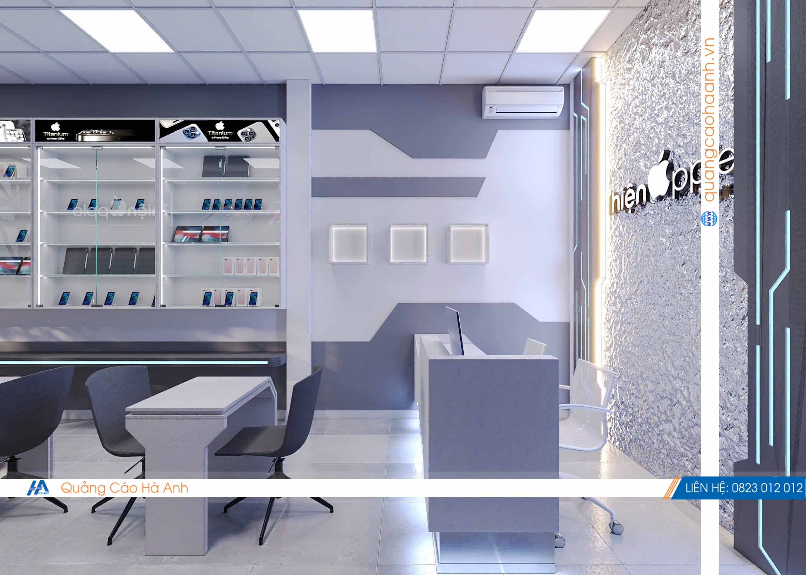 Thiết kế cửa hàng điện thoại Thiện Apple bởi Quảng cáoHà Anh là đơn vị chuyên thiết kế & thi công nội thất bảng hiệu các công trình Shop, Showroom, Spa, Nhà hàng, karaoke, Cafe... hàng đầu.