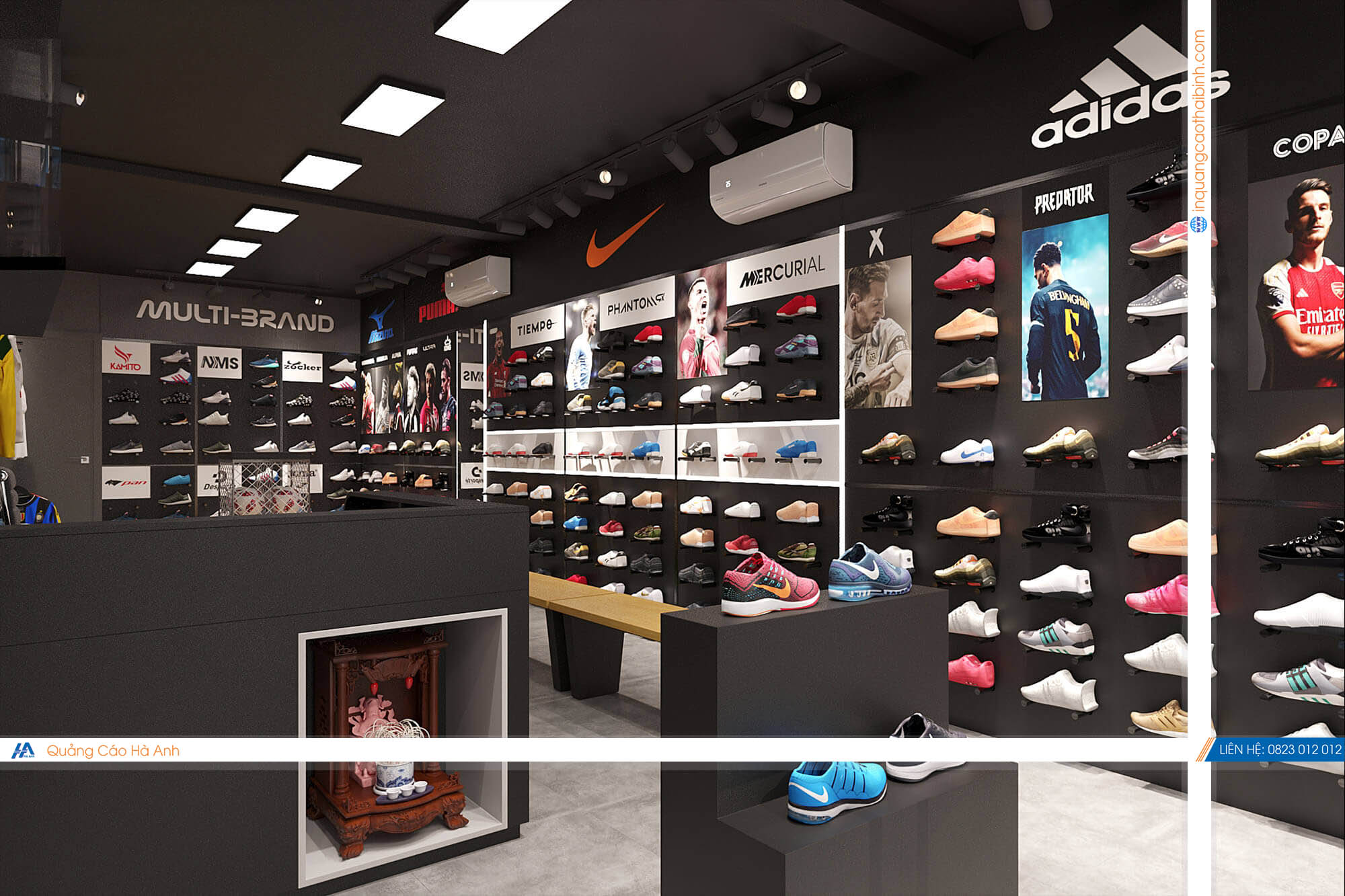 Thiết kế Showroom giầy Nema bởi Hà Anh là đơn vị chuyên thiết kế & thi công nội thất bảng hiệu các công trình Shop, Showroom, Spa, văn phòng, Nhà hàng, karaoke Cafe... hàng đầu.