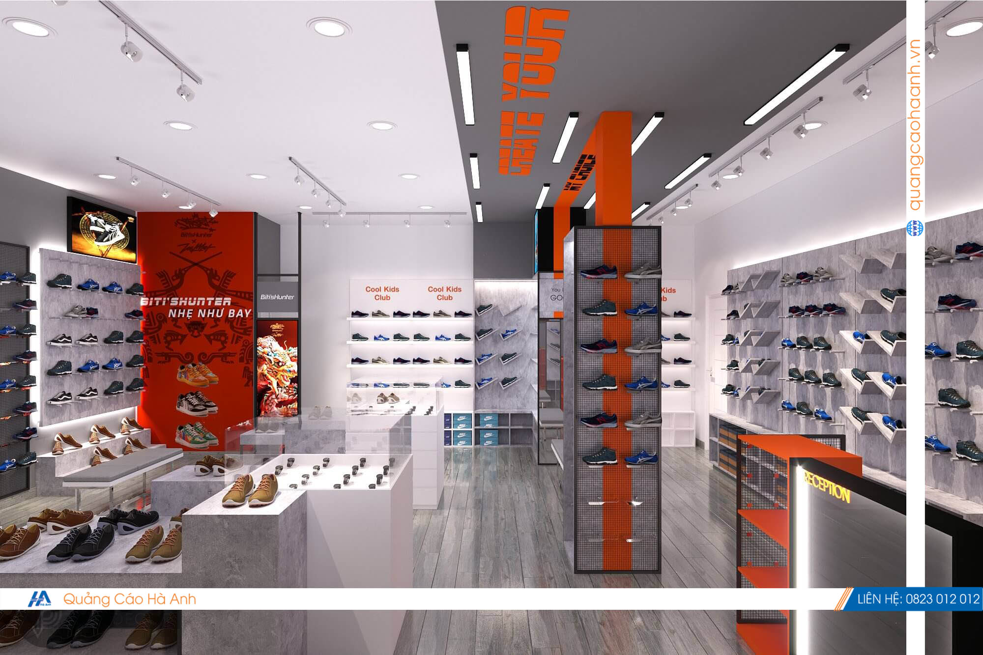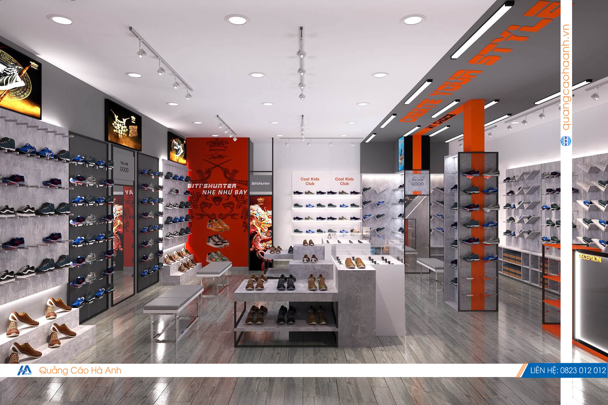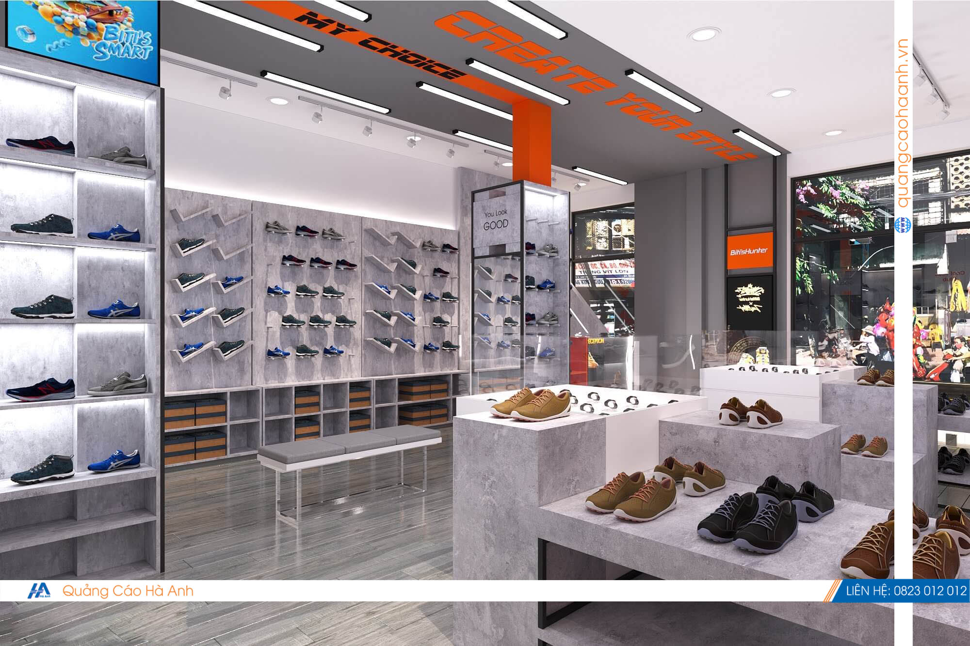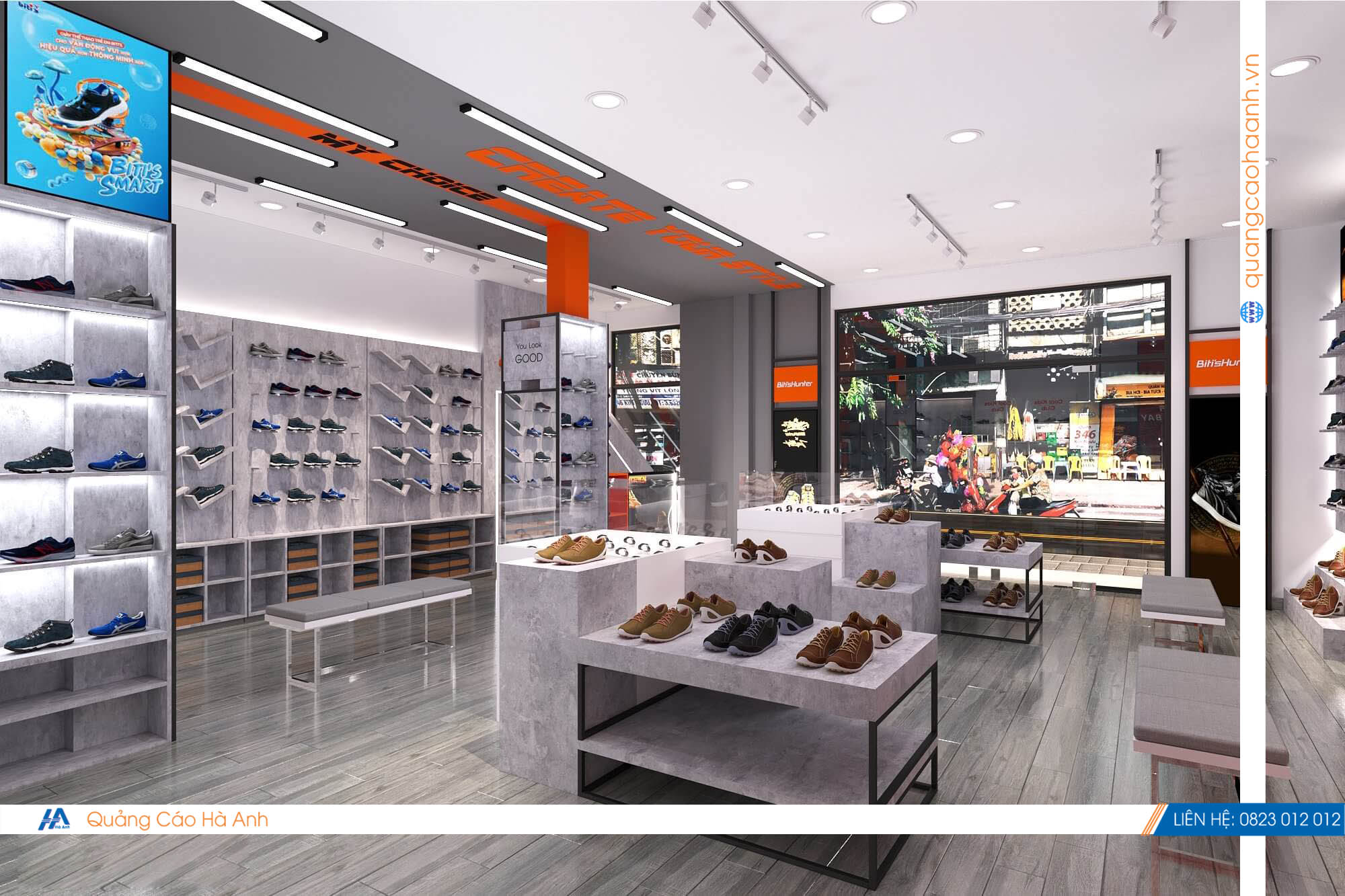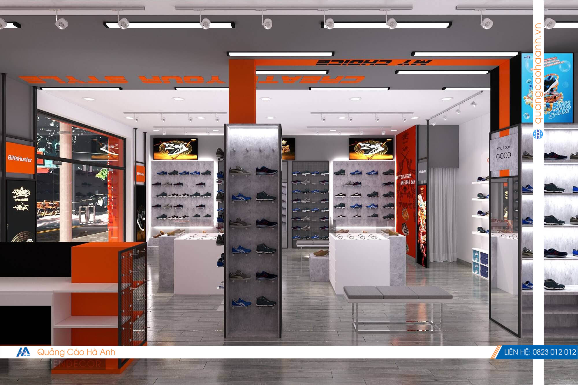 Thiết kế Shop giầy Quân Trần Shoes bởi Hà Anh là đơn vị chuyên thiết kế & thi công nội thất bảng hiệu các công trình Shop, Showroom, Spa, văn phòng, Nhà hàng, karaoke Cafe... hàng đầu.