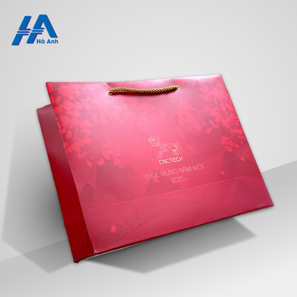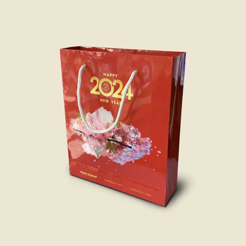 Túi giấy đựng quà Tết: Yêu cầu chất liệu cứng cáp, chịu lực tốt để bảo vệ quà tặng bên trong.