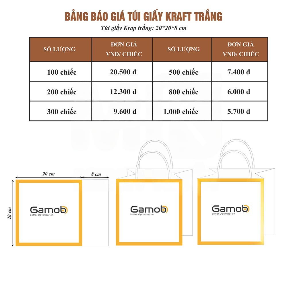 Bảng giá in túi giấy Kraft trắng kích thước 20*30*10 cm tại Hà Anh